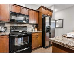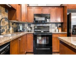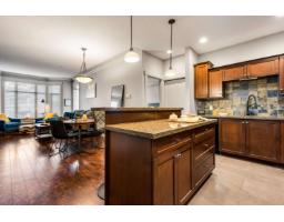Welcome to The Regent! This bright and spacious second-floor unit offers 2 BEDROOMS, 2 BATHROOMS, PLUS A DEN"- perfect for a home office! The open-concept layout features high ceilings, a kitchen with granite countertops, ample cabinetry, & an island with seating, flowing seamlessly into the dining area & living room with a COZY ELECTRIC FIREPLACE & access to the patio. THE PRIMARY BEDROOM INCLUDES AN ENSUITE WITH DOUBLE SINKS. Enjoy the convenience of IN-SUITE LAUNDRY with storage space & shelving, AIR CONDITIONING for year-round comfort, & a COVERED BALCONY WITH BEAUTIFUL MOUNTAIN VIEWS. This PET-FRIENDLY BUILDING includes one UNDERGROUND PARKING STALL & is ideally located within WALKING DISTANCE TO THE RECREATION CENTRE, PARKS, SHOPPING, DINING, & MORE! Don't miss this great opportunity! * PREC - Personal Real Estate Corporation (id:12562)