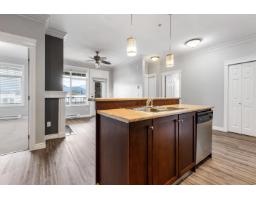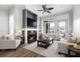 The Flora! 2 bed, 2 bath corner unit on 2nd floor, east-facing "¢ Oversized covered patio with stunning mountain views "¢ Open concept living with fireplace & wall of windows "¢ Kitchen with stainless steel appliances & large island (seating for 4) "¢ Bright primary with walk-through closet & 3pc ensuite "¢ Private second bedroom beside 4pc bath "¢ Crown mouldings, laminate floors & in-suite laundry "¢ Secure gated underground parking + guest parking "¢ Minutes to shopping, hospital & freeway access (id:12562)