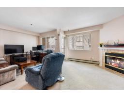 Welcome to Rosewood Gardens! This well-maintained 1-bedroom, 2-bathroom condo offers easy living in a welcoming 55+ community. The bright and spacious main living area features a cozy fireplace and an open-concept living and dining space with direct access to the patio"-perfect for relaxing or entertaining. The kitchen provides ample cabinetry and updated white appliances, while the in-suite laundry offers added storage. The generously sized primary bedroom includes a walk-in closet and a private 3-piece ensuite. Conveniently located close to shopping, restaurants, District 1881, public transit, and recreation - this lovely home is move-in ready. * PREC - Personal Real Estate Corporation (id:12562)