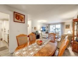 $412 MonthlyThis 2 bedrooms and 1 bathroom condo has been beautifully updated with a bright kitchen featuring white cabinetry, quartz countertops, stainless steel Samsung appliances, adn recessed lighting. The interior boasts high-quality laminate flooring and white baseboards throughout. The bathroom includes a generous walk-in shower with a stainless steel rain shower head and elegant tile backsplash. Situated in a well-maintained 55+ complex with a newer roof and elevator, the property includes heat, hot water, and covered parking. Its prime location offers easy walking access to shopping (Semiahmoo Mall), dining, transit, and parks. SHOWS VERY WELL. (id:12562)