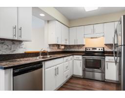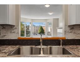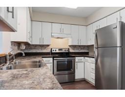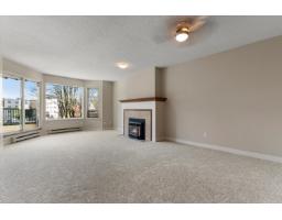 Welcome to this bright & spacious 1 bdrm, 1 bath condo, 804sqft of comfortable living space. Desirable south-facing exposure, this home is filled w/natural light. The thoughtfully designed layout features a large living room complete w/cozy natural gas fireplace, perfect for relaxing or entertaining. The kitchen offers ample cupboard & counter space, along w/convenient peek-through to main living area and room for a dining table. Recent updates include new carpet & new HWT. Additional features include in-suite laundry for added convenience. This well-maintained building offers an elevator, underbuilding parking, storage locker, and access to a residents' lounge. Convenient location- just a short walk to shopping, restaurants & amenities. Strata $353.83/mo, no age restrictions & no pets. * PREC - Personal Real Estate Corporation (id:12562)