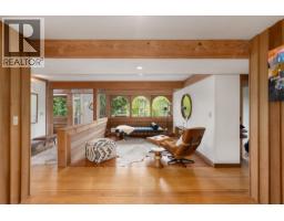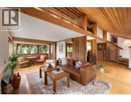 Hidden behind a green veil of bamboo,yet central between Ambleside & Dundarave(walking distance to the seawall)sits this West Coast Modern gem designed by Arthur Müdry.A defining voice of West Coast Modernism,his legacy includes WV Baptist Church,Beaton & Chun Residences.Reimagined for his family in the mid-70´s to reflect his architectural philosophy of embracing nature & natural light.The house was transformed by hidden pocket doors,opening walls & reshaping the roofline with a massive central gallery of skylights to explore openness & connection,viewing architecture as a living & evolving experience.Enter the 2 storey cathedral glass foyer with repeating banks of curved windows running the length of the house bringing in the SW light.Open Main Floor- relaxed Living areas with stucco fireplace,BBQ deck & open staircase from study/gallery overlooking reflecting pool, aggregate patio & garden.Open Upper level overlooks main floor with huge deck running the length of the house off kitchen/dining/family areas. (id:12562)