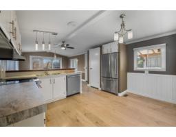This 55+ mobile park is located in the very desirable community of Hatzic......just minutes to downtown Mission and the West Coast Express. This home sits on a cement pad and has been tastefully renovated in 2021 with S/S appliances, white front loading washer & dryer, kitchen countertops, 2 A/C units, laminate flooring through-out, chrome & brushed light fixtures, ceiling fan, window blinds & modern paint colours. This home also boasts a new roof done in 2021, hurricane anchors for extra support and a heater so the pipes won't freeze. The outside showcases a big front deck for lounging, landscaped yard back yard for entertaining, enclosed back porch for the extras, back deck for BBQing and a storage shed for all the yard tools. Don't miss out and call today for your private showing! (id:12562)