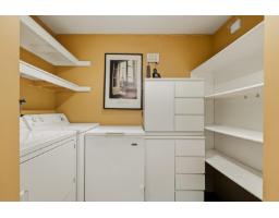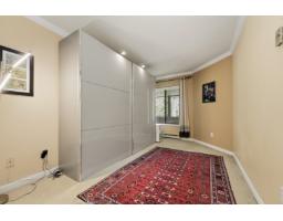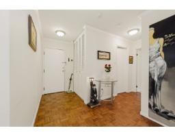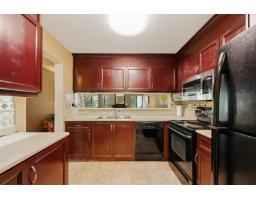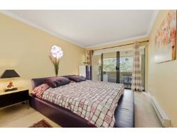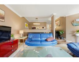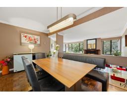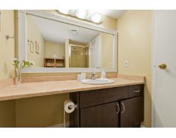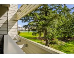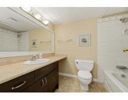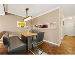 $607.52 MonthlyWell-maintained and thoughtfully updated, this unit offers a pleasant east-facing outlook over the park. The kitchen has been refreshed with wood-faced cabinets, updated countertops, flooring and backsplash, and roller blinds are installed throughout including the patio door. Crown molding and fresh paint give the interior a clean, finished feel. Both bathrooms feature updated vanities and fixtures. The dining area comfortably seats six, and the sunken living room with gas fireplace adds a cozy focal point to the main living space. The covered balcony faces east with a park view and gets good morning light year-round. BBQs are permitted on the balcony. The building underwent a significant envelope renovation in 2014, including a full rainscreen system, Hardie board siding. (id:12562)