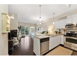 $268 MonthlyA solid find at THE GRUV. Bright, quiet, and super well kept. This 1 bed, 1 bath home offers 612 square feet of well laid out living plus a 104 square foot covered south facing balcony overlooking a quiet, treed setting. Open concept layout with laminate floors, granite countertops, stainless steel appliances, and a new dishwasher. Nook off dining is perfect for a work from home setup. Tons of natural light throughout and a walk through closet in the bedroom with semi ensuite access to the bathroom. Well maintained building with gym, amenity room, central hot water, visitor parking, and EV chargers. Includes 1 secure parking + bike storage. Pet friendly. Walk to SkyTrain, SFU, schools, Central City, Holland Park, and Surrey Memorial Hospital. A solid buy in today's market. Don't sleep on this one! Book your private showing today! (id:12562)