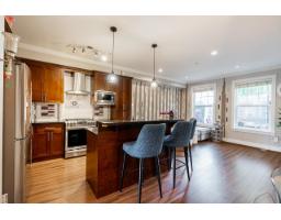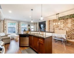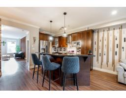Welcome to Yorkson South-ROW HOME-NO STRATA FEES. This spacious home offers living/dining room a bright main floor, two gas fireplaces, a gourmet kitchen with SS appliances, gas stove, eating bar, powder room, & a covered balcony perfect for BBQs. Details include crown moulding, elegant flooring, granite countertops throughout, designer lighting, and large windows. Upstairs offers side-by-side laundry, two generously sized bedrooms with a full bathroom, & a stunning primary suite with a walk-in closet & spa-like ensuite featuring double sinks & dual shower heads. The basement includes a large REC room with a 3-piece bathroom. Complete with a side-by-side double garage, two additional parking spaces, a fenced yard. Walking distance to schools, shops, parks. O/H March 07 @ 1:00-4:00 (id:12562)