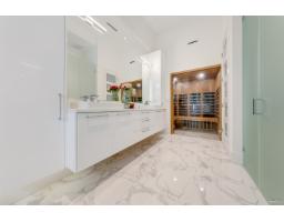 Welcome to Ocean Park! Situated on a rare 16,204 SF flat lot, this custom-built residence offers over 4,600 SF of refined living space. The main floor features an expansive great room with soaring ceilings and 10' folding Eclipse doors opening to a private backyard. Gourmet kitchen with marble island and premium Thermador appliances, including steam oven. Main floor primary suite with spa-like ensuite and sauna, plus guest bedroom/office with ensuite. Upper level offers 3 spacious bedrooms. Enjoy radiant heating, wine cellar, media room, and resort-style amenities. Close to shopping and top school catchment: École Ocean Cliff & Elgin Park Secondary. (id:12562)