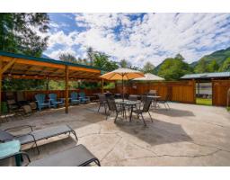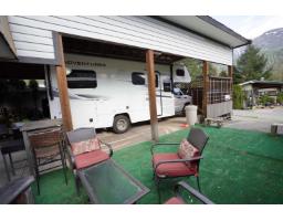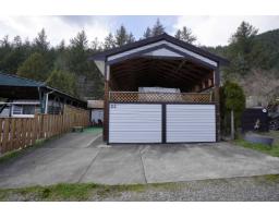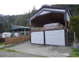 Just in time for summer joy! This lot is situated in the All Hallowes Recreational Park within the renowned Fraser Canyon. There is a professionally installed structure designed to shelter your recreational vehicle on the lot. The front section swings open, allowing free access for your RV or motorhome while keeping it from the elements. A pretty patio space and a spacious storage shed with a new roof and soffits provide ample area for all your outdoor essentials. The park offers full-time caretakers, a heated inground pool, laundry facilities, showers, fully serviced visitor parking, and a clubhouse for community gatherings. The yearly membership fee is $1,400.00, covering taxes, water, garbage, sewer, common property maintenance, and snow removal.Summer fun awaits! (motor home not incl.) (id:12562)