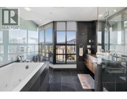 $2,000 MonthlyRare 2,783 sqft sub-penthouse at Vancouver Tower with only 2 homes per floor, offering exceptional privacy, space and luxury. This 3 bedroom + den, 4 bath home has undergone extensive Reno's featuring Poggenpohl cabinetry, Miele and Sub-Zero appliances, walnut flooring, heated tile floors, air conditioning and prewired built-in sound. Rare loft style open living with entertainment sized principal rooms and all bedrooms with ensuite baths. Large wrap around balcony almost 600 sqft captures north facing city and mountain views. Incl: 3 side by side parking stalls and storage locker. Amenities include 24-hour concierge, indoor pool, hot tub, sauna, gym and recreation rec facilities. Prime downtown location. (id:12562)