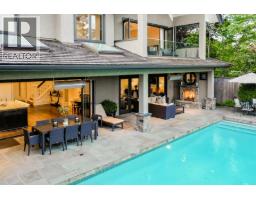 Discover one of the finest and most elegant homes in Dundarave, perfectly situated on one of the area´s most coveted streets. This custom built residence showcases exceptional craftsmanship and an attention to detail rarely seen. Set on a flat 60' x 132' southside lot, the property offers 5,401 sq. ft. of sophisticated living space, plus an additional 540 sq. ft. attached garage/storage area. The main level features a beautiful living room and a gourmet kitchen with a casual dining area that opens through eclipse doors to a stunning, covered BBQ patio. Outside, enjoy over 1,500 sq. ft. of sun-drenched outdoor living complete with a pool, hot tub, outdoor shower, and a level lawn area-perfect for entertaining. Upstairs are four generous bedrooms, each with its own ensuite. The expansive primary suite includes a large walk-in closet and a luxurious 6-piece spa-inspired ensuite. This trophy property is a must-see, offering air conditioning, a home gym, and a wine cellar. (id:12562)