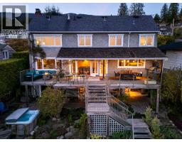 This charming, beautifully renovated home (fully rebuilt to the studs 18 years ago) offers a warm cottage feel with stunning ocean views. The well-appointed main floor offers a gorgeous south facing kitchen/dining area opening thru french doors to a large sun-drenched deck with a covered dining & BBQ area perfect for entertaining & taking in the views! Also a main floor office, cozy tv area, & a large mud room off the parking area at the front of the house. The top level features 4 bedrooms, 2.5 baths, including a stunning primary bedroom with a large ensuite with his & her sinks, a soaker tub & separate shower & a walk in closet. The lower level includes 1 bedroom & 1 bathroom & a sink & fridge area ideal for guests or easy suite potential, plus easy access to the cozy hot tub area too! Located on a quiet, family-friendly street, just steps to Irwin Park, Pauline Johnson, West Van High Schoo, Dundarave Village, the seawall & transit. Bonus: grassy back yard with playhouse, plus lots of storage in the house! (id:12562)