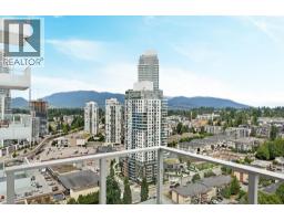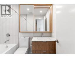 This brand new 535 sf 1-bedroom, 1-bathroom unit features an 80 sf covered balcony, 9' ceilings, laminate wood floors, and in-suite heating and cooling (system only). Enjoy stunning views of Coquitlam parks, Fraser River, and Surrey cityscape. The foyer offers a coat closet and space for shoe racks. A rectangular living-dining area opens to the balcony. The kitchen boasts two-toned cabinetry, quartz countertops with matching backsplash, under-mount stainless steel sink, pot lights, under-cabinet lighting, and stainless steel appliances including a gas cooktop. The bright bedroom offers large windows and views. The 4-piece bath includes quartz counters, soaker tub with shower, and wood-accented vanity. Rent includes one parking stall and a bike locker. (id:12562)