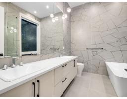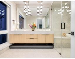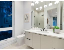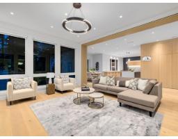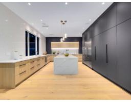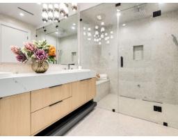 MODERN YET FUNCTIONAL LUXURY HOME! This elegant residence seamlessly blends contemporary design with practical living, offering the perfect balance of style and functionality.The main floor boasts an open-concept layout featuring a glass-door home office, a private bdrm with an ensuite, & two kitchens, equipped with waterfall islands and top-of-the-line appliances. Upstairs, discover four spacious ensuites, including a luxurious primary bdrm with floor-to-ceiling glass windows and access to a private deck. A cozy sitting area provides an ideal space to relax and unwind. The lower level offers a gym, a media room, and a 2-bedroom legal suite with separate access. A self contained coach house, , ample front parking, abundant natural light, designer lighting fixtures, a private backyard. (id:12562)