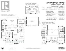 Welcome to 27107 River Road, a stunning brand-new estate in Maple Ridge´s Whonnock Lake area, designed for a big, active family. This over 6,000 sq/ft home offers 7 bedrooms and 8 bathrooms, plus a detached 2-bedroom suite above the garage-ideal for multi-generational living. Featuring dramatic vaulted ceilings, a separate spice kitchen, and luxurious high-end finishes in every room, this home combines elegance with functionality. Set on 3+ private acres, surrounded by trees with Fraser River views, this property offers the perfect blend of space, style, and serenity for family living at its finest. (id:12562)