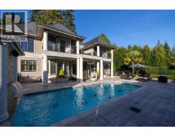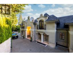 Magnificent European Chateau in Prestigious Altamont. A Marque Thompson-designed gated estate, this 6-bedroom, 8-bath residence blends European elegance with modern sophistication. A sweeping driveway, grand entry & handcrafted marble staircase set an unforgettable tone. The chef´s kitchen, with Sub-Zero, Wolf & Miele appliances plus a WOK kitchen, flows into formal rooms & bright entertaining spaces. Walls of glass open to a resort-style backyard with swimming pool, Jacuzzi, firepit & pavilion, all framed by lush landscaped gardens. Upstairs, the primary suite is a spa retreat, with marble bath, rain shower, freestanding tub & boutique-style walk-in. Three additional ensuites provide comfort for family & guests. The lower level features a theatre, wine cellar, gym, sauna, steam & nanny quarters. Smart automation, radiant heating, Murano fixtures & biometric security complete this residence. In one of West Vancouver´s most prestigious enclaves, it offers unmatched beauty, privacy & sophistication. (id:12562)