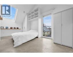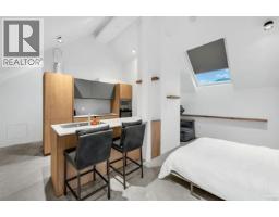 Truly 1-of-a-kind! A boutique 4-unit complex with no restrictions (AIRBNB ALLOWED) & no maintenance fees! This top-floor West Coast contemporary studio impresses with its minimalist design, clean lines & modern aesthetic. Feat vaulted ceilings, radiant polished concrete floors & loads of natural light. Custom built-in Murphy bed with storage & electric blinds add both function & style. The kitchen is a showpiece by "Maistri" with premium "Barazza" appliances, complemented by "Oli/Toto" fixtures & Artelinea vanities & mirrors. Scandinavian Asko washer/dryer & dishwasher complete the high-end package. Located steps from the shops, schools, downtown, the NEW ST.PAULS Hospital & great restaurants/breweries. Lots of free street parking. Do not miss out on this turn key investment. (id:12562)