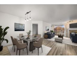 $487.57 MonthlyMichaud Gardens! This UPDATED TOP-FLOOR CORNER unit offers 2 beds & 2 baths w/bedrooms on opposite sides for privacy. The bright kitchen is a showstopper w/ample cabinet & counter space, rare window over the sink, SS appliances, pantry, & eating area. The dining space fits a large table, while the spacious living room w/cozy gas fireplace opens to a west-facing deck overlooking beautiful Linwood Park! Large primary bedroom has plenty of closet space & ensuite, plus a second bedroom beside the family bath. Laminate flooring throughout & laundry room w/updated washer/dryer make this home move-in ready. All in a very well-managed complex w/amenity room, workshop, courtyard gardens w/fountain, one parking w/lots of street parking & storage locker. Steps to parks, shopping, schools, & transit! (id:12562)