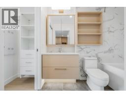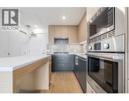 Luxurious 1-bedroom unit with insuite heating/cooling, laminate floors, and roller blinds. The functional layout maximizes space, with a spacious living-dining area opening to a 100 sq. ft. covered balcony. The high-end kitchen includes two-toned cabinetry, quartz countertops, Carrara marble-style backsplash, Grohe faucet, under-cabinet lighting, a center island doubling as a dining table, and Bosch appliances, including a 30" gas cooktop. The bedroom overlooks the balcony and has two walk-through closets. The 4-piece bathroom, accessible from both the bedroom and kitchen, features quartz counters, tiled walls, custom shelving, a Kohler toilet, a soaker tub, and a frameless glass enclosure. Rent includes 1 parking stall and 1 storage locker. (id:12562)
