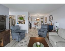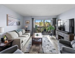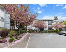 $452 MonthlyWelcome to Alameda Court - where comfort meets convenience! This beautifully updated top floor 2 bedroom & 1 bathroom unit offers a bright, east-facing exposure with serene views that invite peaceful mornings and an abundance of natural light. Thoughtfully renovated throughout, the home features modern laminate flooring, plush newer carpet, and a stylish bathroom with tiled shower and floating vanity. The kitchen is equipped with stainless steel appliances and a sleek backsplash. Enjoy in-suite laundry, private deck with storage space, and an additional same floor locker. A well-managed 55+ community with ample parking, including underground and RV options. Newer roof and repiped building. Strata fee includes heat and hot water. Quiet & refined living in a central location. Move right in! (id:12562)