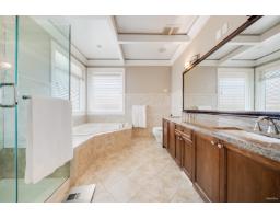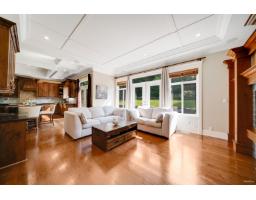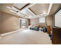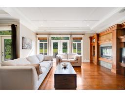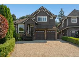 Nestled in a quiet cul-de-sac, this stunning home sits on a massive 11,717sqft lot with a beautifully landscaped, south-facing backyard. Quality built with an exceptional layout, it boasts 10-ft ceilings on the main floor and 14-ft vaulted ceilings in the living room, complemented by classic 7-inch wide plank flooring. The gourmet kitchen features granite countertops, high-end stainless steel appliances, and a built-in pantry. Offering two master bedrooms-one conveniently located on the main floor-all upstairs bedrooms come complete with walk-in closets and ensuites. Enjoy premium amenities including a games room, media room, gym, home sound system, and full house A/C. Located in a highly desirable South Surrey neighborhood, close to Southridge private school, shopping, recreation (id:12562)