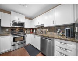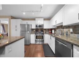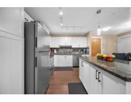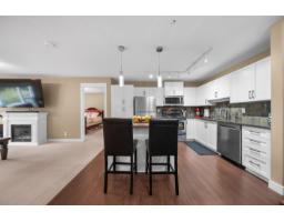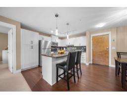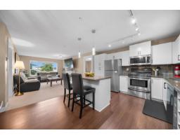 $375.09 MonthlyWhistler-inspired living at its best! This beautifully maintained 959 sqft home offers 2 bedrooms, 2 bathrooms, den/storage, and a spacious, open-concept layout designed for everyday comfort. The kitchen is built to impress with stainless steel appliances, white shaker cabinets, a large eat-up island, and abundant storage, flowing seamlessly into the dining and expansive living area. Enjoy natural light through oversized windows and step out to your private balcony with stunning Mt. Baker views. The spacious primary features a walk-through closet and full ensuite, plus convenient in-suite laundry. Bonus in-suite storage room/den with shelving and freezer space. Prime location near shopping, transit, and quick highway access. Family-friendly, secure parking & 2 pets allowed. (id:12562)