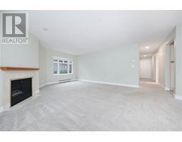 This well-maintained 1-bedroom, 1-bathroom suite offers a bright open-plan living and dining area, featuring a cozy gas fireplace and access to a large private patio. The primary suite is generously sized, accommodating a king-sized bed with room for additional wardrobes or a sitting area. The bathroom features a walk-in tub/shower for added comfort and accessibility. This home includes A/C, a storage locker, and an easily accessible parking stall. Enjoy fantastic building amenities, including an indoor pool, gym, library, games room in this sought after location. (id:12562)