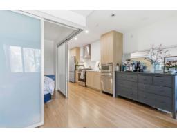 $263.16 MonthlyAFFORDABLE 1 bedroom/studio-style unit at Wren + Raven, with all the comforts of home in a newer complex, situated across from tranquil greenery and steps to shopping and amenities. Smart layout features sleek modern kitchen with ample storage, stainless appliances incl gas range and built-in microwave, plus undermount sink. Living area has extra-large window overlooking greenery for natural light, and bedroom space with sliding dividers for flexibility. Full bath and stacking laundry. Fantastic solarium-style balcony with opening glass panels for year-round use. 1 underground parking stall and a large storage locker conveniently located at the parking stall. Building amenities include exercise centre and dog wash. Steps to food, shopping, and minutes to W/C Xpress! (id:12562)