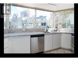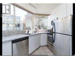 $450.06 MonthlyLarge corner unit one bedroom plus Den home located right downtown at the corner of Hornby and Davie Street. The home features stainless steel appliances, contemporary countertops, laminate flooring, bathroom upgrades updated in 2019. The living room boasts 50 feet of windows allowing for natural light and open views. The building is very well maintained, has a newer roof, elevators, and building envelope. The laundry is located just outside your door and with two full-size machines. Tenants are allowed. Includes 1 parking stall, visitor parking and two storage units. (id:12562)