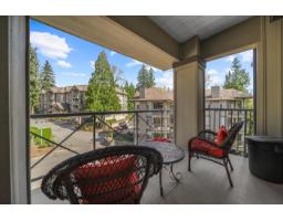 $466.32 MonthlyNestled away from traffic find the desirable gated development of Nature's Gate. Backing greenbelt and surrounded by trees it's nice to come home to quiet. A unique offering of this two bedroom and two full bathroom condo perched on the corner of the third floor. Ideal layout with two spacious bedrooms on opposite sides, dining area with cozy nook and bright living room with access to fully covered balcony. Simply move in and unpack as this one is freshly painted and clean. Enjoy gazing over the development and not directly at the side of another building. No parking problems here with TWO dedicated stalls which are side-by-side and secure in underground parking. Lots of visitor parking for your guests. Very well run strata allowing your large dog and comes with additional storage locker. (id:12562)