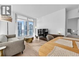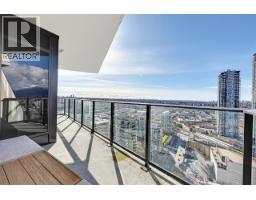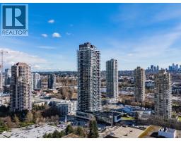 $533.42 MonthlyExperience panoramic views from the 32nd floor of Akimbo by Imani Development, a standout landmark in the heart of Brentwood. This bright 849 sqft corner residence features 2 bedrooms, 2 bathrooms, and a versatile DEN with custom built shelving that stays with the home. Large windows wrap around the living area to capture natural light and frame vibrant sunsets. The open layout is finished with durable laminate flooring and a modern kitchen with integrated appliances and sleek cabinetry. A major highlight is the oversized 185 sqft covered balcony, providing a private outdoor retreat high above the city. Enjoy amenities including a concierge, fitness center, and lounge, all just a short walk from Gilmore Skytrain and The Amazing Brentwood. This home includes an EV-ready parking stall. **OPEN HOUSE: Sat, March 28, 2-4 PM** (id:12562)
