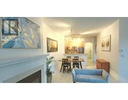 Fully-Furnished SE facing 850 sqft, 2 Bdrm/2Baths,+Den unit, with an outdoor covered balcony, that overlooks the landscaped inner courtyard and pool area.The extra high 9'6" ceilings and big windows allow an abundance of natural light into all rooms and over the off white laminate floors of this bright and clean unit.The gas Fireplace and mantle, are a great focal point, and create a warm ambience, in the living and dining areas, with the big open kitchen, overlooking it all. Spacious primary bdrm has a queen bed, and its own bathroom/tub. 2nd bdrm has a single bed and desk, with options to change to a double or queen bdrm and we will move the desk. Available now! (id:12562)