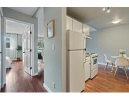 TOP FLOOR living with no one above you. Enjoy peace and quiet in this centrally located 1 bedroom condo. With no age or rental restrictions, everyone can enjoy one of the most desirable units in the complex. The spacious bedroom easily fits a king-sized bed, while the bright living area accommodates a full-size couch and opens to a covered deck for year-round use. Featuring a newer bathtub and a functional layout, this home offers comfortable everyday living. 1 parking stall, and storage available. Transit is right at your doorstep with a bus stop just a short 2-minute walk away. Redone windows, balcony door, hot water tank, and so much more. A great opportunity to get into the market"-stop paying rent and own your own home or become a first time landlord. Don't miss this perfect opportunity. (id:12562)