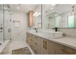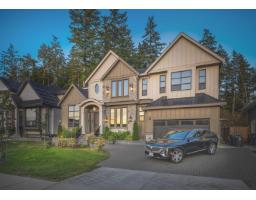 This captivating craftsman-style custom home is a true showpiece. Striking curb appeal, meticulously crafted exterior and 6,300-sf+ of thoughtfully curated interior living. Inside, experience designer features such as a hidden powder room, 3-way fireplace and glass-enclosed den with vaulted ceilings. The transitional interior is defined by soaring 20-ft ceilings, radiant heating, high-end millwork and finishings throughout. The modern kitchen is equipped with built-in F+P appliances incl. beverage maker, gas cooking, designer hardware, walk-in pantry and a secondary prep kitchen. The main floor layout includes a second living area lounge, a mudroom and a fully ensuited bedroom suite. Enjoy a quiet treed yard and expansive covered deck in beautiful Brookswood. (id:12562)