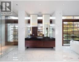 Over 1.1 Million lower than 2026 BC Assessment: $5,698,000. Experience unparalleled luxury in this modern Balinese-inspired villa, custom built by G. Wilson and designed by Arno Matis Architecture / RUF Project. A dramatic foyer with soaring 12-ft ceilings welcomes you on both the main level and basement. Exceptional craftsmanship throughout with custom Italian marble, refined millwork, and spa-like ensuite bathrooms. The chef´s kitchen is equipped with Miele and Gaggenau appliances, while expansive floor-to-ceiling doors create seamless indoor-outdoor living. The primary suite offers a private lounge, inner-lit onyx fireplace, and a luxurious spa-inspired ensuite. Premium features include HVAC, integrated audio-visual system, and motorized blinds. Resort-style outdoor living with custom daybeds, 48" BBQ, firepits, hot tub, and stunning water features designed by Paul S. A truly unique luxury residence offering exceptional value.Open House 2 to 4 pm Sat March 14th,2026 (id:12562)