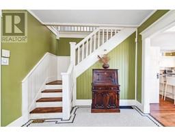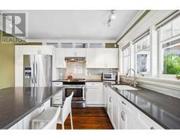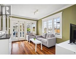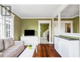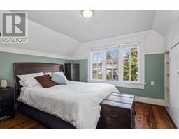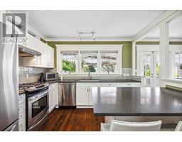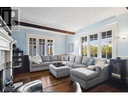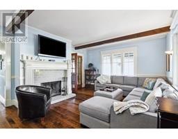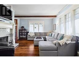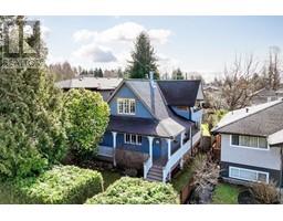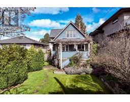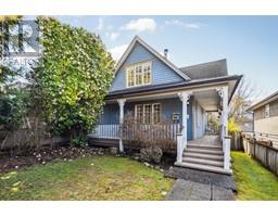Lovingly maintained heritage home in Central Lonsdale, blending historic charm with modern updates. Known as the Cant Residence, this Edwardian home was built in 1911 and expanded in 1914. Notable features include a wrap-around verandah, sleeping porch, and original fir floors with millwork and wainscoting. The grand foyer leads to an open-plan living/dining area with a wood-burning fireplace and stained-glass window. The modern kitchen boasts stainless steel appliances, a large island, and opens to a sunny deck. Upstairs offers 3 bedrooms, a 4-piece bath, and a balcony with mountain views. The fenced backyard includes a grassy area, tree fort, and EV-equipped parking. Steps from Carson Graham Secondary, parks, and close to all Lonsdale amenities. (id:12562)