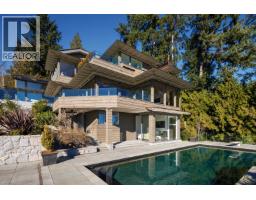 Immaculate West Vancouver estate home with INCREDIBLE, UNOBSTRUCTED OCEAN VIEWS. No expense spared renovation of this 4 bed + 4 bath, nearly 5,000 sqft home by Russell Hollingsworth in 2008, followed by a comprehensive interior design program by WT Leung Architects and HB Builders between 2021 and 2024. Extensive use of "Porro" Italian panelling systems and cabinets throughout. Snaidero kitchen. Italian basalt floors. Massive primary bedroom suite, A/C, separate yoga studio, over height two car garage. Stunning house is a study in crisp, modern interior design. Large 28,000sf estate lot, features extensive landscaping by Bearmark Design, including many rare tree and plant species.To complete the offering, extensive terraces and a large swimming pool gaze confidently south and west towards the ocean and city skyline. Unrepeatable. (id:12562)