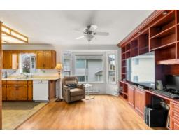 $494.10 MonthlyOriginally the Developer's Unit! You'll love all the extra details in this 2 Bed/2Bath END UNIT in the desirable Trafalgar Park community. Drenched in light from the many windows, this spacious home has a huge great-room living/dining area, PLUS a large family rm w/ a gorgeous dark wood built-in entertainment unit. Sprawling master w/ dbl closets & Ensuite, plus back-door access to outdoor garden area. 2nd bedroom w/ another built-in wood unit w/ Murphy bed creates versatility as a functional office space, guest bedroom, or whatever suits your needs! Fresh paint, new floors, huge laundry room w/ shelving, PLUS a bonus storage room conveniently located on the patio. Heat & Electricity incl.in Strata fee. Pets allowed, & just 1 owner must be 55+. 2 parking spots, Clubhouse & Guest suite too! (id:12562)