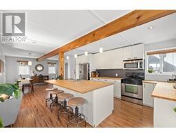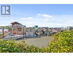 Experience serene living right on the water in this beautifully renovated 2 bedroom and 2 bathroom float home. Gorgeous open plan on main features spacious living, dining, and kitchen spaces. Separate storage, back door mud room, built-in computer workstation, wooden stove, West Coast-inspired wood kitchen counters, laundry, architecturally stunning beams w/vaulted ceilings, new hot water tank 2022 and redone downstairs bathroom. Primary bedroom is extra cozy with fireplace. Home was completely rebuilt in 2010. Moorage is approximately $1400 p/m. Convenient location close to Canada Line, shopping, airport, and 5 minutes to Vancouver. Incredible value for waterfront living in a gorgeous community. (id:12562)