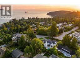 Spectacular custom home blending warmth, design, and elevated West Coast living. Main floor features a stunning open-concept kitchen with oversized island, high end appliances, pantry & wet bar flowing to the dining area; formal office/bedroom; living & family rooms. Perfect family floorplan with 2 car garage. Four spacious bedrooms up, including a stunning primary suite with ocean views, WIC and spa-inspired ensuite. Designed for exceptional indoor-outdoor living, the home creates a tranquil Scandinavian inspired experience featuring a barrel sauna, pool/hot-tub & covered patio with fire table, all against the Cypress mountainside backdrop. Situated on a private, fully fenced 15,000sq/ft lot on a quiet cul-de-sac just minutes to top schools, Caulfeild Village & Isetta Café. Welcome home. (id:12562)