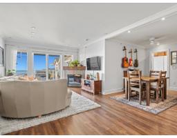 $540.66 MonthlyLife looks a little different from the top! Stunning southwest ocean views take centre stage in this top-floor 1 bed + den, 2 bath home, filling the space with light and calm. Designed to feel elevated and welcoming, the flowing layout maximizes comfort and connection to the view. The updated kitchen features quartz finishes and premium appliances, blending style and function. A refined wood fireplace mantle adds warmth, while smart storage and custom wardrobes keep the home organized. The bedroom is a quiet retreat with plush carpeting and spa-inspired bathroom. Recent building upgrades include a new roof, gutters and air handling unit, plus refreshed interior common areas with new paint, carpets and furniture. Two parking stalls and a storage locker complete this elevated coastal home! (id:12562)