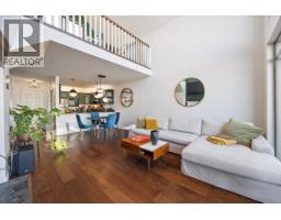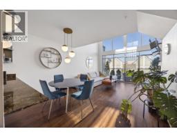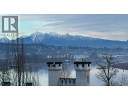 $538.30 MonthlyArchitectural penthouse with 20ft vaulted ceilings & dramatic double-height living. Rare loft-style home lives like a townhouse, with exceptional volume, natural light, and design forward finishes. 2-bed home offers 1092 sqft of interior living space with approx. 144 sqft of open volume above the living room. Gas fireplace, CB2 designer lighting, & kitchen with labradorite stone countertops, solid oak cabinetry, & brass details. Enjoy 183 sqft of outdoor space with north & south-facing balconies with Fraser River & garden views. Spacious primary includes custom walk-in closet with floor to ceiling storage & full bath with separate tub & shower. Rainscreened building with upgrades completed. Steps to Glenbrook Ravine Park, SkyTrain, Royal Columbian Hospital, & shopping. (id:12562)