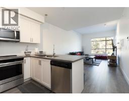 $336.79 MonthlyRarely available TOP FLOOR unit at LUMIERE! Enjoy the safe, peace and privacy that comes with top-floor living. Located in the heart of Downtown Port Coquitlam, this well-designed open-concept 1 bedroom, 1 bathroom home features a modern kitchen with quartz countertops, breakfast bar, stainless steel appliances, and white shaker cabinetry with under-mount lighting. Enjoy 12mm laminate flooring throughout with TJI silent floor system, 9' ceilings, and 10' ceilings in the living area for an open, airy feel. Includes roughed-in central vacuum and smart thermostat. Whether you are a first-time buyer, downsizer, or investor, this charming home is a wonder place to settle in and enjoy. (id:12562)