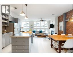 Great creative space in the iconic Crandall Building, a sought-after 1912 loft conversion in Yaletown´s historic warehouse district. Fully furnished and designer-remastered, this unique home features soaring 10-ft ceilings, exposed brick, metal beams, bamboo floors, and a cozy gas fireplace. Two walls of large European turn-and-tilt windows fill the open living, dining, and kitchen areas with natural light. The gourmet kitchen includes high-end stainless steel appliances, Fisher & Paykel fridge, Bertazzoni gas stove, and a mobile butcher-block island. Stylish furnishings, custom millwork, built-in workstation, and surround sound make it perfect for entertaining. Bedrooms feature solid birch barn doors; the primary includes an ensuite with walk-in shower. Includes parking and locker. (id:12562)