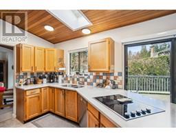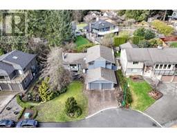 Terrific 4 level split family home on a quiet cul-de-sac in Lynn Valley. Quality-built by Noort Construction, this one-owner property has been lovingly maintained since new. Featuring a versatile layout with 5 bdrms, 3 baths, & nearly 3,000 sq/ft of interior space including a walk-out bsmt. The main floor offers an open-plan living and dining area with cedar-lined vaulted ceilings, a gas fp, & bay windows. The kitchen features a cedar skylit ceiling, wood cabinetry, & sliding doors to a sunny west-facing deck. A family room with another fireplace opens to a large patio. Upstairs has 4 spacious bedrooms, including a primary with ensuite. The lower level offers a rec room, utility room, and suite potential. Located in a sought-after, family-friendly neighborhood, this home is just minutes from Upper Lynn Elementary, within the Argyle Secondary catchment, and a short walk to Kilmer Park and numerous hiking and biking trails. (id:12562)