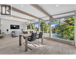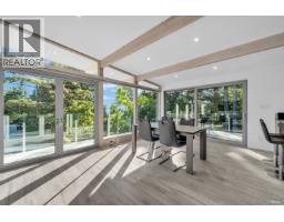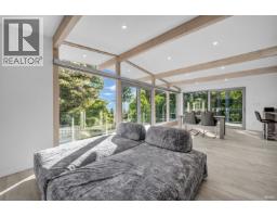 This striking West Coast modern residence perfectly combines architectural elegance with natural serenity and view of the ocean. Inside, the open-concept layout is bright and airy. Soaring ceilings and exposed beams add character and volume. Floor-to-ceiling windows invite natural light and frame lush greenery. The uncluttered living and dining areas extend seamlessly to a sunlit balcony, perfect for entertaining or relaxing in complete privacy. A sleek, minimalist kitchen features premium Miele appliances, custom cabinetry and abundant workspace. The lower level offers a spacious, flexible area with endless possibilities, ideal as a private gym, additional bedrooms or customized to suit family´s lifestyle needs. The uniquely designed garage ideal for collectors or design enthusiasts. This home offers a rare balance of sophistication and calm, making every day feel like a retreat in nature. (id:12562)
