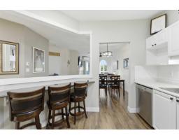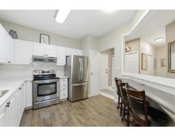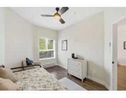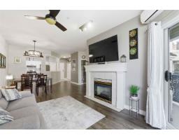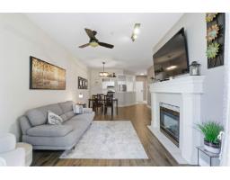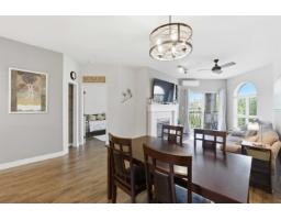 $470 MonthlySpotless & move in ready! Bright & open 2-bed, 2-bath TOP FLOOR CORNER UNIT! Featuring high ceilings, modern colours & functional layout designed for comfort & style. Large kitchen offers plenty of space for cooking plus spacious dining & living area for entertaining. Primary bedroom has 4 pce ensuite, 2 closets & private balcony. Enjoy an abundance of natural light through south-facing windows & peaceful views of lush greenspace. Step out onto either of your 2 balconies to sip morning coffee, or cozy up by the gas fireplace in the evening (gas included in strata fee). Resort style perks include pool, swirlpool, fitness & amenity rooms & guest suite. Well maintained complex with secure parking & storage. Ideally situated in quiet & private setting, yet just minutes to all amenities! (id:12562)