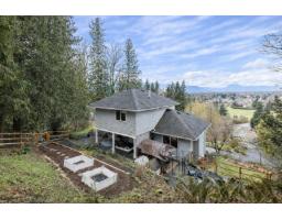 REATHTAKING PANORAMIC MOUNTAIN & VALLEY VIEWS from most main rooms & large deck! Gorgeous updated 2941 sf 2 storey with basement & oversized double garage with high ceilings plus a detached 22x13 workshop (suite potential in workshop) on a beautiful private park-like 2.38 acre back to nature retreat in peaceful Majuba Hill - minutes from the small community of Yarrow. Gourmet kitchen with double ovens, gas cooktop, breakfast bar island & eating area flow into the family room with electric fireplace. The home features a traditional layout with a large living room & adjoining dining room. 3 spacious bedrooms up- primary boasts a wall of closets & a luxurious ensuite with dual vanities, separate shower & a soaker tub with Mountain views. Bright basement with games room or 4th bedroom & large hobby/storage room. On city water. New high-efficiency furnace & A/C (2022). A perfect blend of privacy, space, and breathtaking views"-book your showing today! (id:12562)