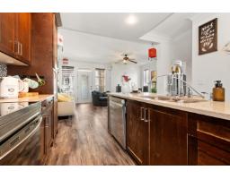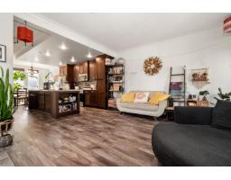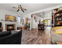 End-unit townhome in Garrison Crossing's Park Gate community. This immaculate 2072 sqft residence is bathed in natural light. Open-concept main level features a spacious kitchen with stainless steel appliances, quartz countertops, a large island, a formal dining space, a secondary kitchen/pantry zone, an expansive living area with natural gas fireplace, a view-facing deck, a den, and a 2pc bath. Upstairs includes a roomy primary suite with a walk-in closet and ensuite, two additional sizable bedrooms, a 4pc bathroom, and laundry facilities. The basement boasts a massive rec room with private entry and a modern fireplace feature wall. Unit has oversized single garage, stamped concrete-covered patio, and fenced backyard. Steps from Garrison Plaza, Cheam leisure center, schools & rivers! (id:12562)