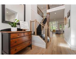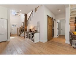 Inside Creekside Mills, a gated community blending resort-style amenities with farm-to-table living, discover this peaceful 2,185 SF 3-bdrm home on a tailored meadow lot with panoramic mountain views. This light-filled haven offers a calm, restorative feel with white oak hardwood, reclaimed beams, a textured feature wall, sliding barn door, and a timeless, organic palette. Designed for main-floor living, the primary suite is a true sanctuary, with office and laundry all on one level. The clean white kitchen features 9' hickory cabinets, composite farmhouse sink, and built-in buffet. Upstairs offers a retreat-like loft with added space for family or hobbies. Enjoy the quiet luxuries of A/C, year-round comfort on a private, expansive covered deck, plus a double-car garage with epoxy flooring and a custom garden shed. Experience this active neighbourhood near the lake with a 4,500 SF clubhouse, outdoor pools, gym, court, gardens, walking trails, and vibrant social calendar. (id:12562)