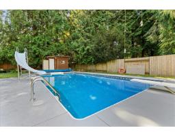 Beautifully maintained 4BR & 2.5 bath home in quiet cul de sac, a perfect family home with heated inground pool (solar panels & gas boiler). Large living room with wood burning fireplace, updated kitchen countertops, kitchen with skylight & sliding door to a covered balcony. Spacious primary BR 20'2 x12'5 with ensuite bath, 2 good size BR & another full bath. Heat pump & high efficiency gas furnace. Laminate flooring in living, dining & kitchen. Updated countertops & newer flooring in baths. Bright walkout basement: family room with gas fireplace, large windows in games room, 4th BR/den, half bath & laundry. Single garage & storage behind garage. Fully fenced private back yard, 16'x18' Studio/workshop for home office or hobby room, storage next to workshop & 2 more sheds. Fenced pool area. Large driveway for 4 cars. Close to schools & parks, 8min drive to Willowbrook shopping centre. Open House Sat & Sun 2-4pm. (id:12562)